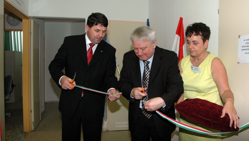 A TIOP-2.2.2-08/2-2009- 0014 „SO2 Sürgősségi Osztály korszerűsítése a Békés Megyei Pándy Kálmán Kórházban” című projekt keretein belül beszerzésre került vizsgáló ünnepélyes átadásán dr. Kovács József és Farkas Zoltán vágta át a nemzetiszín szalagot.
