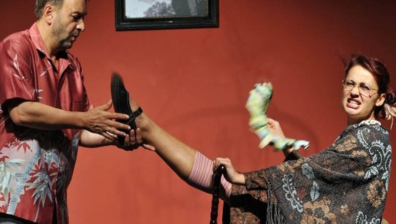 Czeizel Gábor határozott kézzel fogja össze a dramaturgiai bohóságokat, ötletesen segíti a szerepek kibontását, jó ízléssel tarja kordában a sziporkázva lüktető komédiázó kedvet. Találó zenékkel választja el a jeleneteket, segítve a rapid metamorfózisokat. Mert az "egyszer kettő = néha öt!", két szereplő is váltja sűrűn jelmezeit. Először házsártos feleség, minden apróságba belekötő középkorú szipirtyó, majd veronai éveit idéző, de totálisan huszonegyedik századi lányában inkarnálódik. Elég egy trikó, egy napszemüveg, hiteles belső átalakulása jóvoltából lehetetlen felismerni a percekkel előbbi rikácsoló Montague-nét. Nagyváradi Erzsébet fölényes biztonsággal, nagyszerű ritmusérzékkel tobzódik mindkét alakjában.