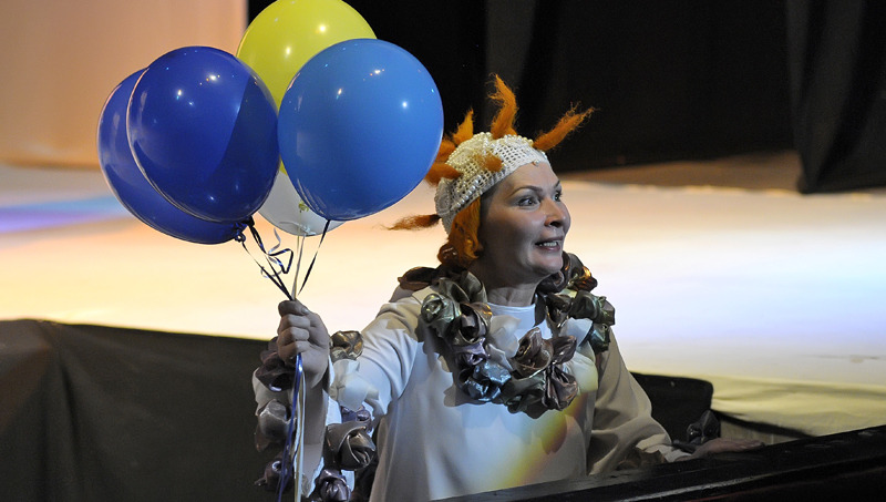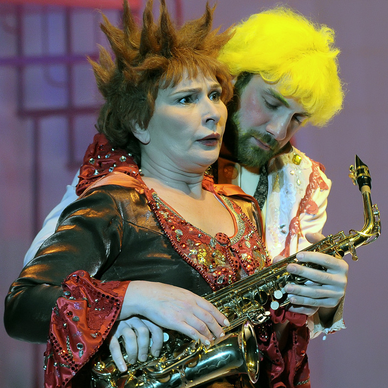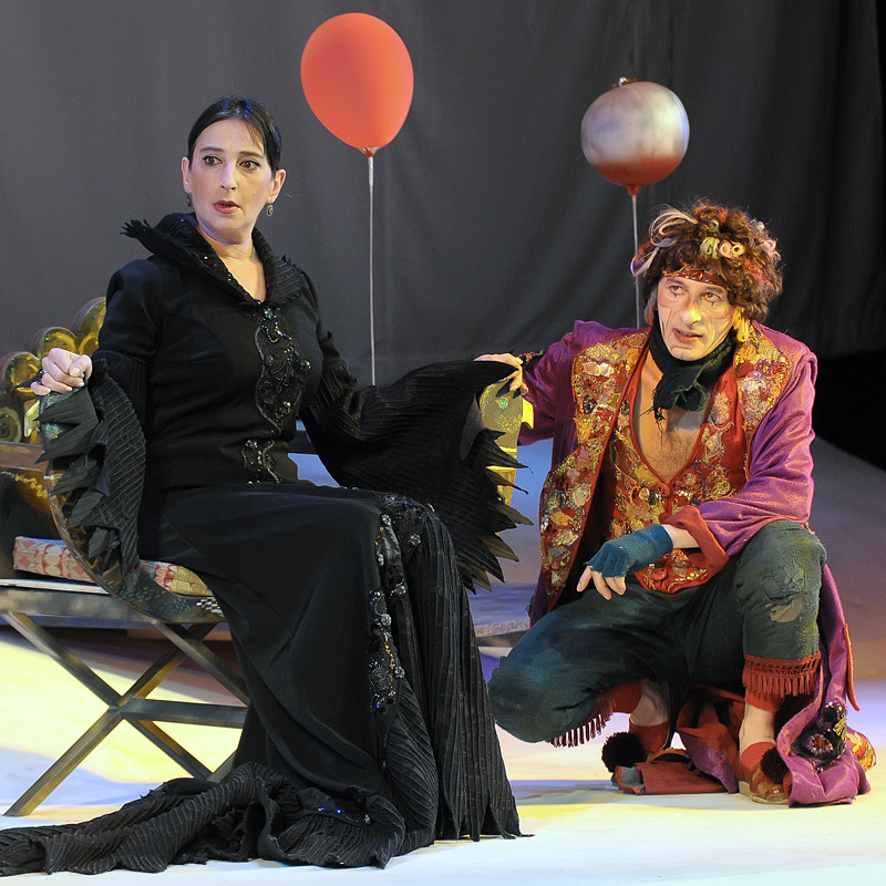A sajátos, cirkuszi hangulatú világot erősíti fel a szereplők, Maria (Nana Khuskivadze), Böffen Tóbiás (Nika Katsaridze) és Malvolio (Zaza Papuashvili) színészi játéka is. A nagy gesztusok, a pantomimszerű, ismétlődő mozgássorok, tánclépések egyrészt jól illeszkednek Shakespeare drámájának bolondozó, játékos jellegéhez, másrészt ellensúlyozzák a bibliai kerettörténet komolyságát. Sturua darabja e kettősség határvonalán egyensúlyoz.