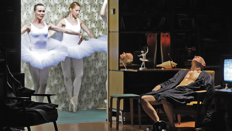 A látomásszerű zárójelenetben, mely keretbe foglalja a darabot, Miranda táncol kifinomult balett-mozdulatokkal, villódzó stroboszkópfényben a Hattyúk tavára.