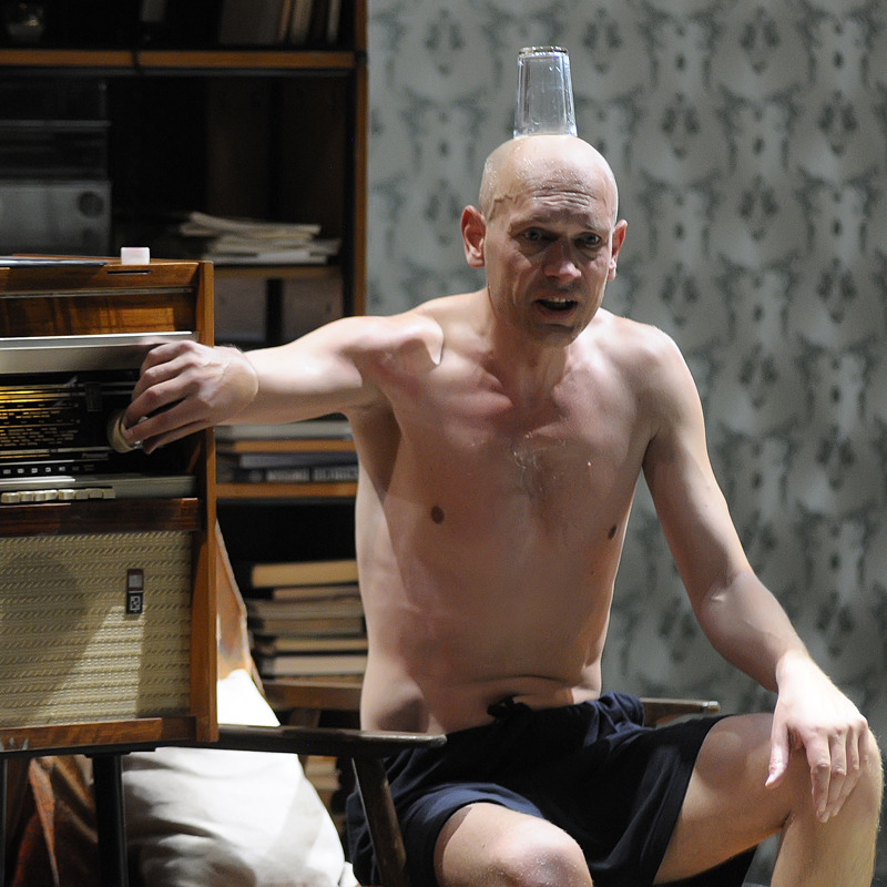 Az előadás díszletei, a bútorok, a dísztárgyak és a könyvek a hetvenes évek egyenlakásait idézik. A nyitójelenetben az apa tesz-vesz a nappaliban: telefonálni akar, a rádióval bíbelődik, megpróbálja megetetni fogyatékos lányát, vodkát tölt magának, sakkoznak, majd sokadszorra olvassa fel lánya kérésére A vihart. A televízióban a Hattyúk tava látható, a rádióban, mely fontos szerephez jut a darabban, a helyi adó adása mellett, néha felsejlik egy Boney M.-dal. A játéktér hangsúlyos része a szobaajtó mögötti tér. Az ajtó üvege mögött füsttel, dörgéssel, villámlással idéződik meg a hajótörés, miközben a vacsora melegszik a konyhában.