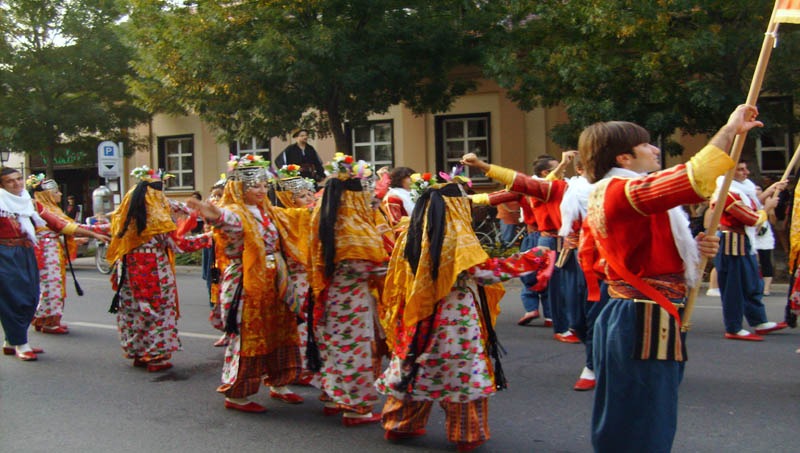 Külföldi együttesek térzenéjével már pénteken délelőtt megkezdődött a Minden Magyarok XVII. Nemzetközi Néptáncfesztiválja. Öt országból több mint ötszáz táncos és zenész érkezett, hogy három napon keresztül szórakoztassa a közönséget, megismertesse kultúráját. A napi programba bekerült a Múlt és Jövő szobor avatási ünnepe, melyet igen sokan tekintettek meg. A vár környékén már kora délután megjelentek az érdeklődők, hogy azután a nap fénypontja, a Világórától induló menettánc benépesítse a gyulai utcákat. A magyar és külföldi együttesek, a jókedvűen mókázó gólyalábasok eleven, színes forgatagot varázsoltak az utakra. Óramű pontossággal a virágosítási verseny eredményhirdetése után érkeztek a Tószínpadra, ahol dr. Kovács József országgyűlési képviselő köszöntötte a fesztivált. „A zene és a tánc a világ közös nyelve, amelyet mindannyian megértünk. A magyar zene és a magyar tánc pedig a mi közös nyelvünk, amely egyidős anyanyelvünkkel, s amelyet minden magyar olyan jól ért” – hangsúlyozta a képviselő.