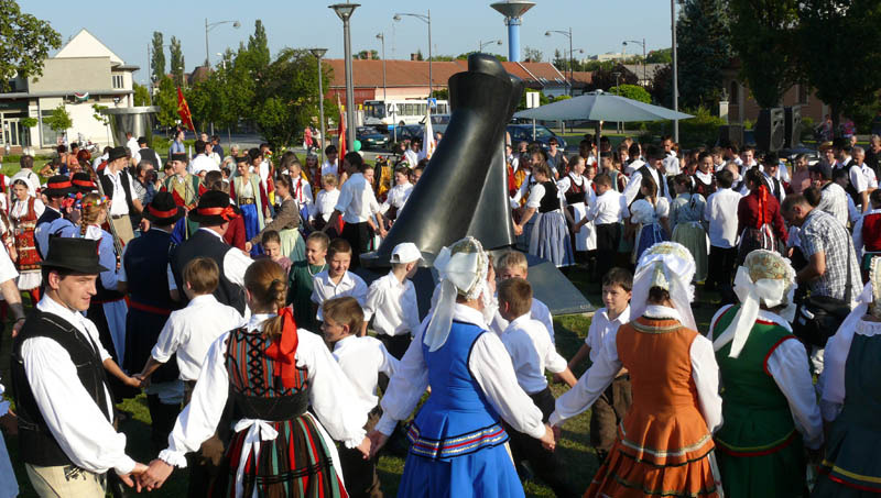 Jelentős közterületi alkotással gazdagodott Gyula, ugyanis évtizedes kálváriája után helyére került Vígh Tamás alkotása, a Múlt és jövő szobor. Dr. Görgényi Ernő polgármester köszöntőjében hangsúlyozta, hogy bár a nonfiguratív, igazi 20. századi műalkotás átlagemberek számára nehezen befogadható, mégis érték, és nagy siker előtt áll. Az alkotást Prokai Gábor, a Magyar Művelődési Intézet és Képzőművészeti Lektorátus művészeti osztályvezetője elemezte. Beszédéből kiderült, Vígh Tamás nem törekedett arra, hogy történelmi eseményre emlékeztető szobrot készítsen, hanem úgy gondolta, olyan szobrot készít, ami a mindenkor itt élő ember számára arckép lesz. A jelent nem mondja ki, a jelen Janus-arcú mását jelenítette meg, ami a múltban gyökerezik, és amiből a jövő építkezik. Az időközben elhunyt alkotó munkásságáról Oroján István gyulai festőművész beszélt, aki a szobor homorú, domború, pozitív és negatív fényjáték-effektusára mutatott rá. Az ünnepség végén a a Minden Magyarok Nemzetközi Néptáncfesztivál táncosai körtánccal tisztelegtek a város legújabb műalkotása előtt.