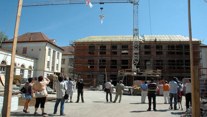 A GYAKI Implom József Általános Iskola felújítása és bővítése ahhoz a fázisához érkezett, hogy a kivitelező a tetőszerkezet elkészültével zárhatóvá tette az épületet. A munkálatokat végző Vektor Kft. – az építők hagyományait követve – bokrétaavató ünnepséget tartott az elmúlt héten, amely során elhelyezték a bokrétadíszt az épület legmagasabb pontján. Az esemény előtt rövid helyszíni bejárás volt, amelyen a meglévő épület teljesen felújított termeit és az újonnan felépített objektum elkészült szerkezetét is megtekinthették a meghívottak.