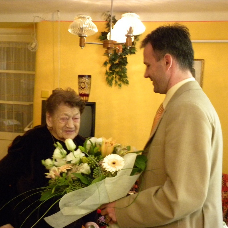 Virágcsokorral, tortával, valamint a Magyar Köztárság miniszterelnöke által aláírt emléklappal köszöntötte Csáki Béláné Erzsike nénit kilencvenedik születésnapja alkalmából dr. Görgényi Ernő, Gyula város polgármestere és Becsyné dr. Szabó Márta, Gyula város címzetes főjegyzője ma délután.