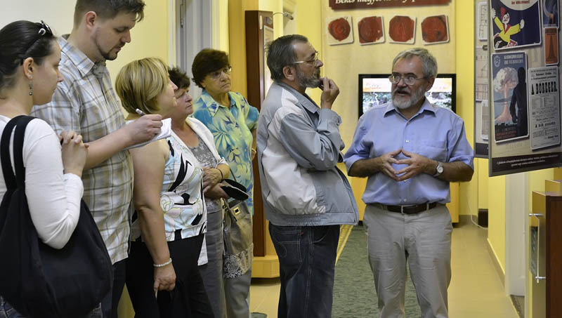 A látogatók Erdész Ádám, a Békés Megyei Levéltár igazgatójának vezetésével járhatták körbe a levéltárat, s nézhették végig a levéltár legérdekesebb iratait bemutató kiállítását.
