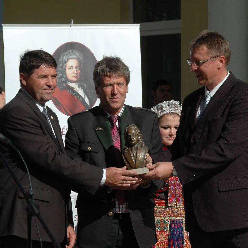 Az osztrák város öttagú hagyományőrző zenekarának előadásával kezdődött a szobor leleplezése, amelyen beszédet mondott Mikulán Róbert, az intézmény igazgatója, Farkas Zoltán, Békés Megye Képviselő-testületének elnöke.