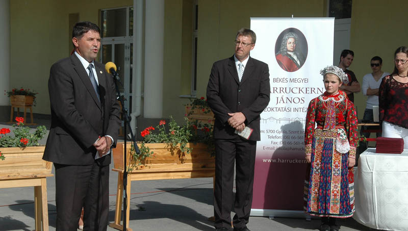 – A fejlődést és haladást hozó harruckerni tevékenységnek állít méltóképpen emléket ez a szobor, amely ezután képviseli majd Békés megyét és a minőségi, életszerű, hiteles szakképzést, amelyet intézményünk folytat – mondta Mikulán Róbert.