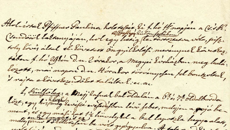 A boncolás során megállapították, hogy a pisztolygolyó a hatodik és a hetedik oldalborda között fúródott be a törékeny testbe. Tormássy nemcsak boncolási jegyzőkönyvet, hanem jellemrajzott is hagyományozott az áldozatról az utókornak: „Pfiffner Paulina 27 éves, nyúlánk, magas, ritka szép egyenes termetű izmos, erős testalkotású, több évek óta Ligeti Kálmán álnév alatt férfiruhában járó, szép műveltségű [nő volt]…”.