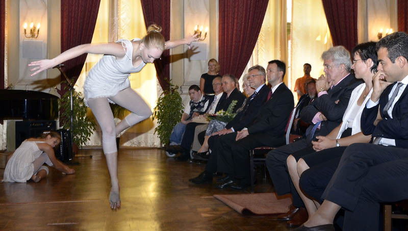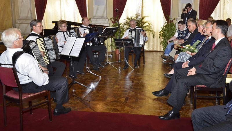 A nosztalgia percei után ditzingeni zenészek szórakoztatták a megjelenteket. Előbb egy harmónika zenekar, majd a hétvégén a város több rendezvényén is fellépő fúvósok játszottak. Parádésra sikeredett a zárás is, két fiatal gyulai táncoslány a két város zászlajával lejtett szívbe markoló táncot.