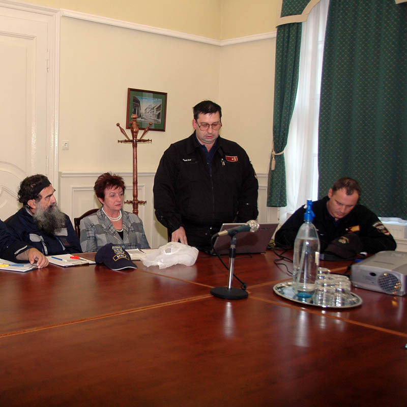 Szegedi Jenő polgári védelmi százados bemutatta a tavalyi év óta megváltozott rendeleteket, majd ismertette a polgári védelmi riasztási gyakorlat feladatát, amelyben a polgárvédelmi szervezetbe beosztott személyeket adategyeztetés céljából kiértesítik, illetve felkeresik. Ez városunkban 33 alegységet és 169 lakost érint.