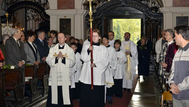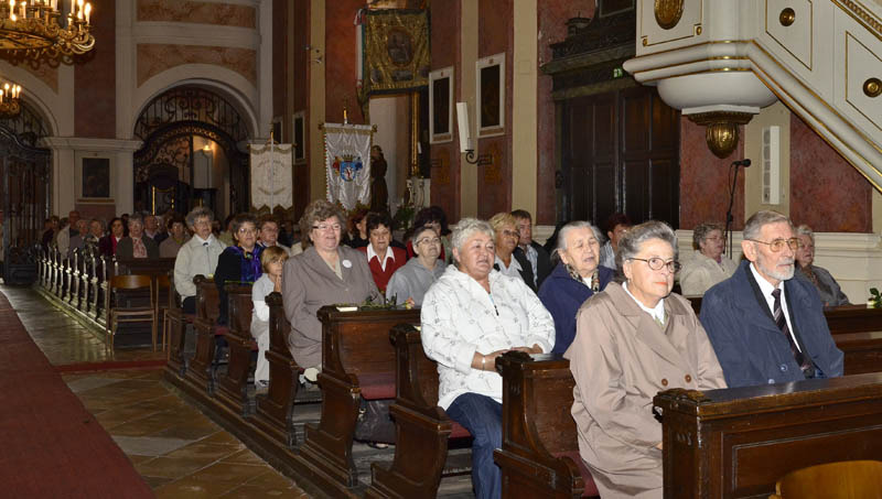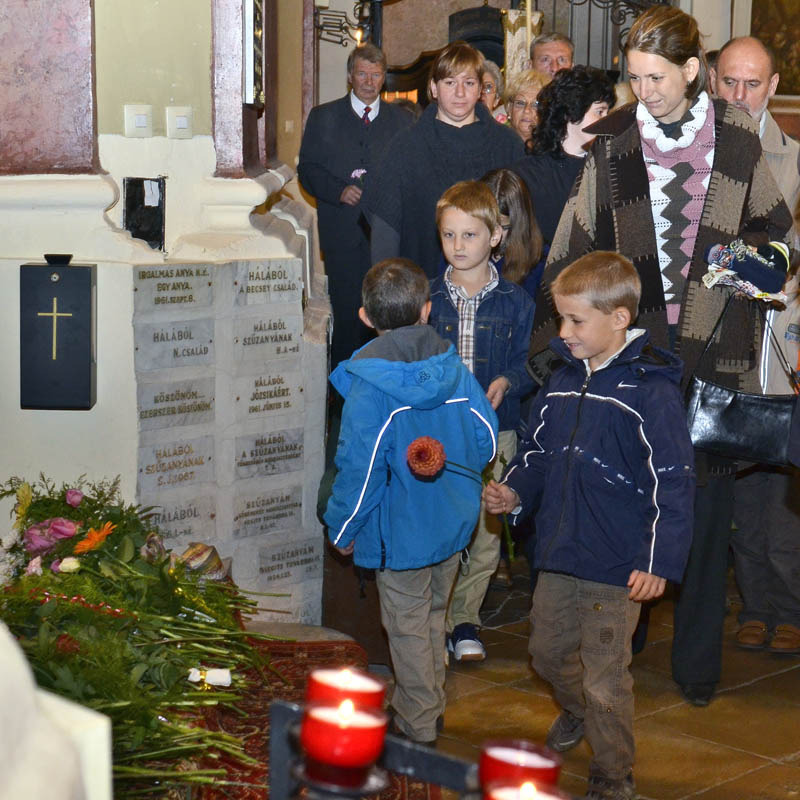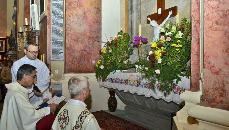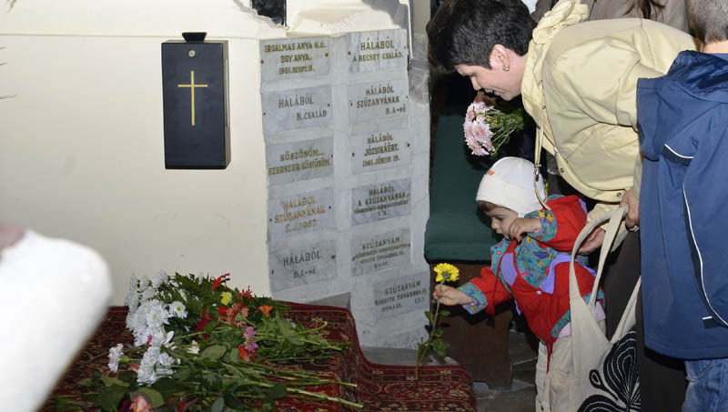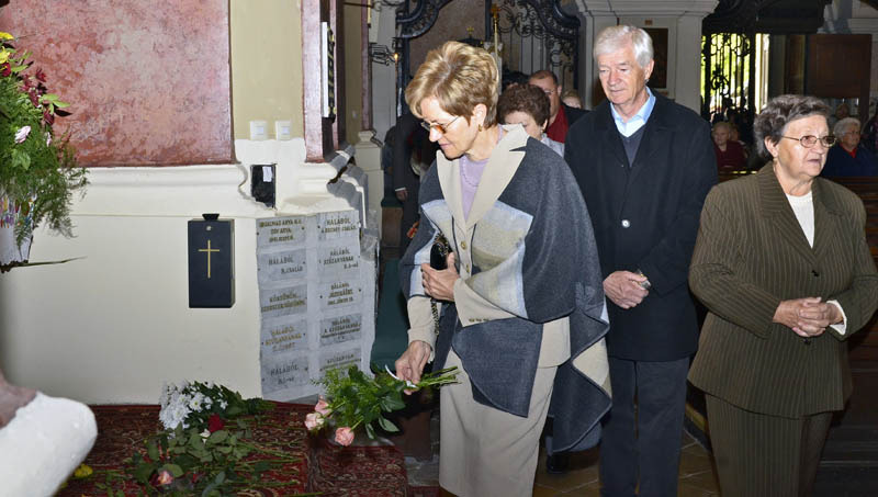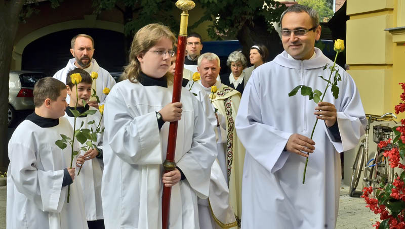 A szentmisére és a virágbúcsúra mindenki hozott magával egy szál virágot. Fotó: Gyulai Hírlap Online - Rusznyák Csaba