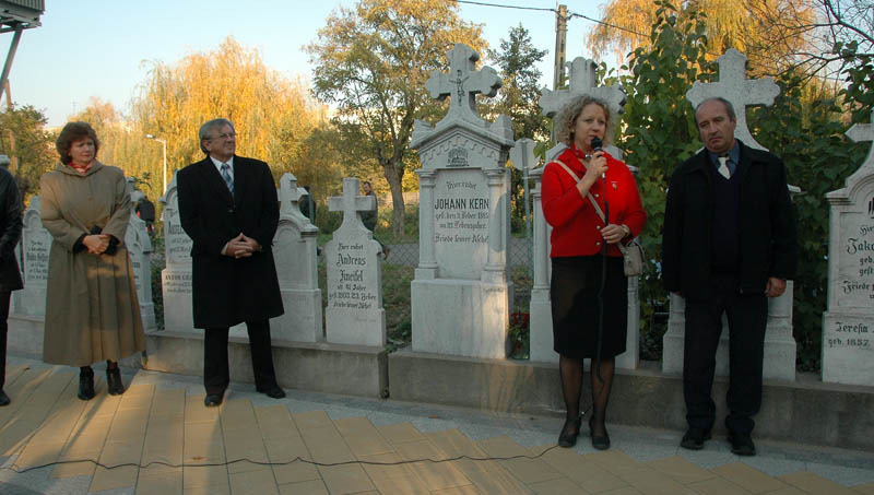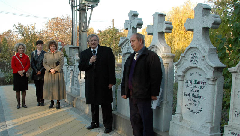 A Gyulai Német Kisebbségi Önkormányzat a hét elején tartotta a németvárosi temetőben lévő sírkereszt emlékhely térburkolatának avatóünnepségét. A betelepült német ősök évek óta fejlődő és bővülő emlékhelye most már jól megközelíthető és esztétikus környezetben található. A sírkeresztek sorával szembe hamarosan kikerülnek a padok is, amelyek alkalmat nyújthatnak majd pihenésre és emlékezésre. A beruházás összértéke mintegy egymillió forint, a tervezés és kivitelezés Vincze Zoltán építész munkája.
