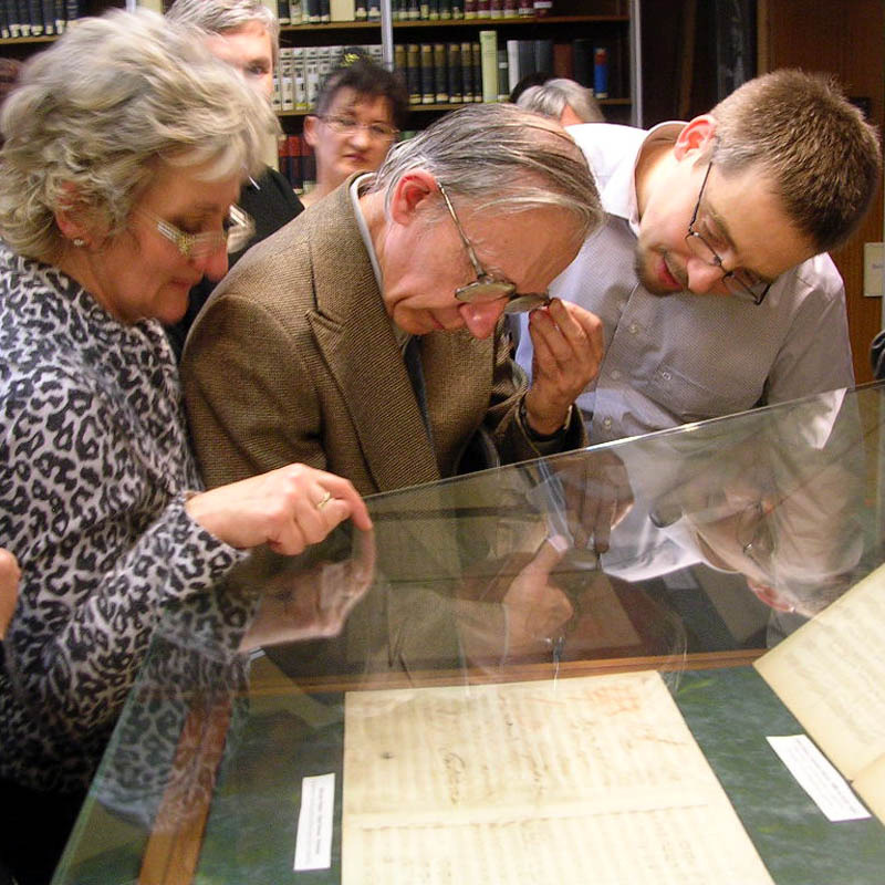 A könyvtár több külön gyűjteményéből kettőt, a zeneműtárat és a színháztörténeti tárat külön is felkeresték a gyulaiak. Mindkettőben számos Erkel-relikviát őriznek. Zenei tárgyú könyvek mindig is voltak a nemzeti könyvtár gyűjteményében, mígnem 1909–1910-ben megvásárolták az Erkel-hagyatékot, ennek köszönheti létét az önálló zeneműtár – mondta el Mikusi Balázs zenetörténész, a tár vezetője. A gyulaiak több Erkel-kéziratot is láthattak. Kölcsey Himnuszának megzenésítésére 1844-ben írt ki jeligés pályázatot Bartay András, a Nemzeti Színház igazgatója. Erkel Ferenc pályázata nyert. Azonban szerzeményét jeligés pályázat lévén más kézírásában kellett benyújtani. Ez a beadott kéziratos pályamunka kapta a zeneműtárban a kéziratok jelölésére használt Ms. Mus. 1/A-jelet. Mellette kiállították az Ms. Mus. 1/B-jelű kottakéziratot is, melyet 30 év múltán maga Erkel vetett papírra, hogy kézírásával is dokumentálja művét. Az a kotta, melyet a pályázatra írt meg Erkel, sajnos nincs meg, csak a beadott eredeti példány, amely kopista munkája. Erre később írták rá Erkel nevét.