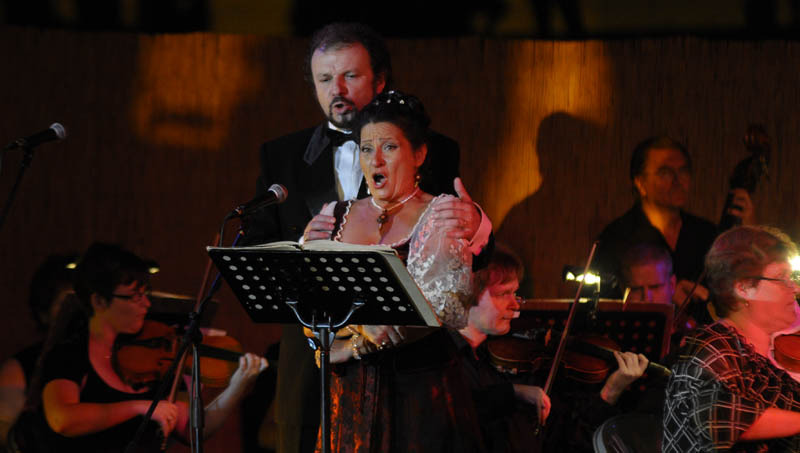 Mindenekelőtt az est ünnepelt csillagát, Tokody Ilonát, az operaház örökös tagját említhetjük, aki adottságai révén könnyen lopja be magát a közönség szívébe, így történt ez most a tószínpadon is. Őt a világ legjobb szopránjai között tartják nyilván, sikerekben gazdag énekesi pályafutása során fellépett a világ legjelentősebb operáiban és számos világhírességet tudhat partnerei sorában. A publikum a Hunyadi Lászlóból előadott részleteket hatalmas tapssal jutalmazta, sokak véleményét fogalmazom meg, ha azt mondom, hogy az „arénakoncertek ünnepelt sztárját” még szívesen hallgattuk volna egy darabig. Akik nem járatosak a hazai zenei élet berkeiben, azoknak meglepetés lehetett Bazsinka Zsuzsannának, az Operaház magánénekesének teljesítménye. Az Osváth Júlia-díj első kitüntetettjének megnyerő egyénisége, szép énekhangja és színészi produkciója lelkes fogadtatásra talált. Ki ne ismerné Erkel operáinak férfi főszereplőit, Hunyadi Lászlót, de különösen Bánk bánt? Hálás szerep jutott tehát Kiss B. Attilának, a Kolozsvári Állami Magyar Opera magánénekesének, aki nagyon rutinosan „kezelte” a közönséget és erősen az érzelmekre ható előadásmódjával hatalmas tapsot aratott. Wagner Lajos baritonján szólalt meg Gara nádor, Tiborc panasza és végül Petur bán keserű bordala. Kassai István zongoraművész egy Erkel zongoradarab előadásával járult hozzá az est sikeréhez. Közreműködött a Debreceni Filharmonikus Zenekar Kocsár Béla vezényletével, valamint a Debreceni Kodály Kórus és a Civis Tánckar.