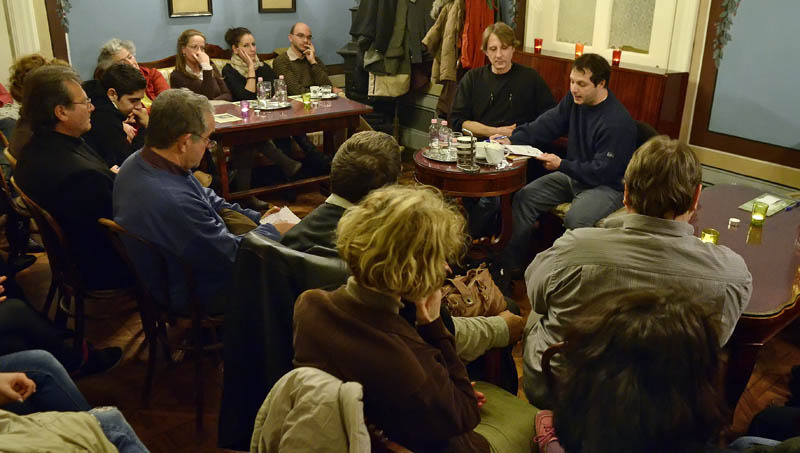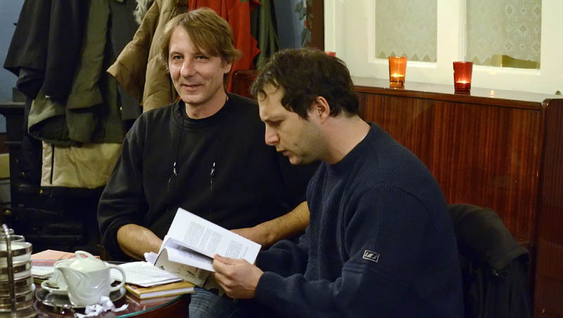 Kiss László novellái –melyek látszólag a fociról és a horgászásról szólnak – a rekeszizmokat megmozgató részek mellett elgondolkodtató fordulatokat is bőven hordoztak. A „Rendes történet” hallatán elszorultak a torkok, s ki- ki a saját nagymamája alakját idézte fel egy percre, az „Őszi sanzon” a nyelvi lelemény eszközeit vonultatta fel, a „Sose láss vendégül költőt” felolvasása viszont megalapozta a derűs hangulatot. A „Térképnek háttal” címen tavaly megjelent novelláskötet darabjai mellett elhangzott „A hely” című novellából néhány részlet, melyek az Élet és Irodalomban is megjelentek már, illetve „A gyerek” című kisnovella.