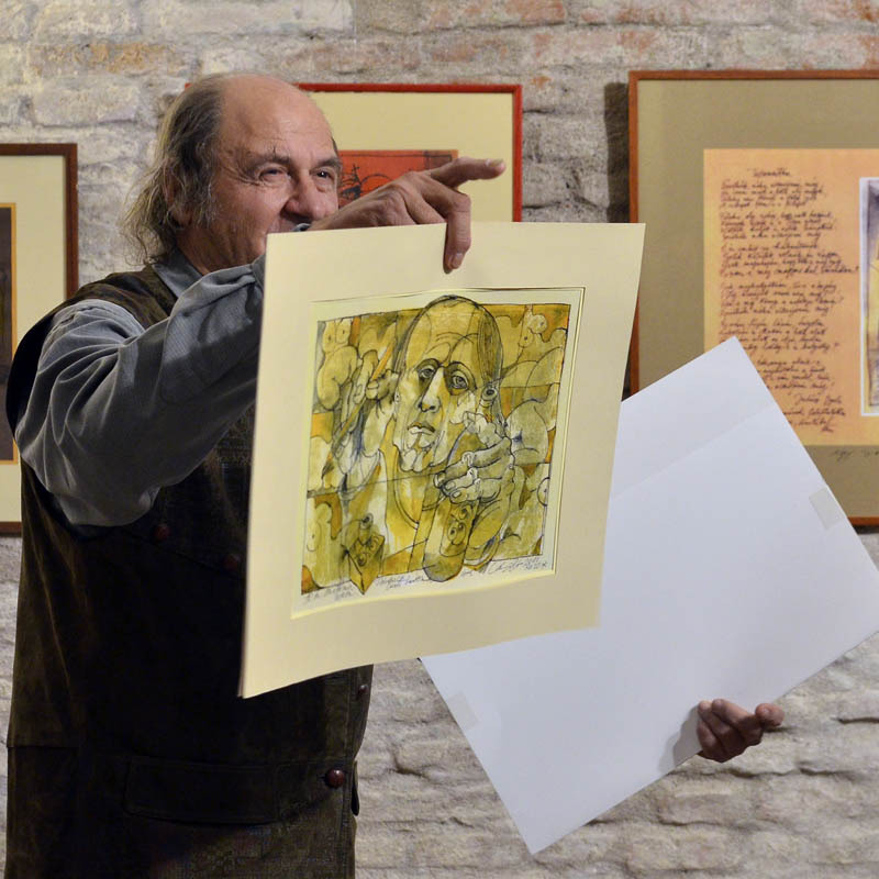 A művész úr elzárkózott a műveibe és műtermébe. Abba a debreceni kis panellakás szobájába, ahol a természet adta hideg uralkodik. A fűtést, a meleget az a rengeteg – antikváriumokban szerzett – könyv adja, mely átsuhan az életén, melyből nekem és immáron a gyulaiaknak is átad egy kis részletet. Azt a képvilágot, amelyet ő – Dosztojevszkij álmodozó Miskin hercegi lelkének vetületével – érez át és él meg. Az életének csatáit úgy éli meg, mint a két sztálingrádi tábornok – Rokoszovszki és Von Paulus, akitől való a következő idézet: „Ein Man ist ein Work.” Amikor is a lélek kerül szembe a testtel, vagyis az adott szó. Amikor nem tudjuk eldönteni, hogy a lélek vagy a test javára tegyünk, illetve teszünk.