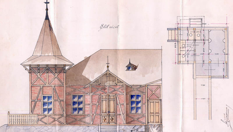 Még 1905-ben az egyesület választmánya az elnök indítványára elhatározta, hogy korcsolyapavilont építtet. A költségek fedezésére 50 koronás részvényeket bocsátottak ki. Gróf Almásy Dénes az építkezéshez 50 000 téglát adományozott. A jégpálya megnyitását és az épület átadását 1905 karácsonyára tervezték, de erre az enyhe idő miatt csak 1906 elején került sor. A jégpálya mellett „impozánsan emelkedik ki a szép, kényelmes, modern pavilon” – állt a Békés beszámolójában. A díszes, tornyos épület két részből állt. Az üvegezett emeleti szintről a jégpálya minden pontját be lehetett látni. A földszinti rész korcsolyák felkötésére szolgált, ebből a helyiségből egyenesen a jégre lehetett lépni.