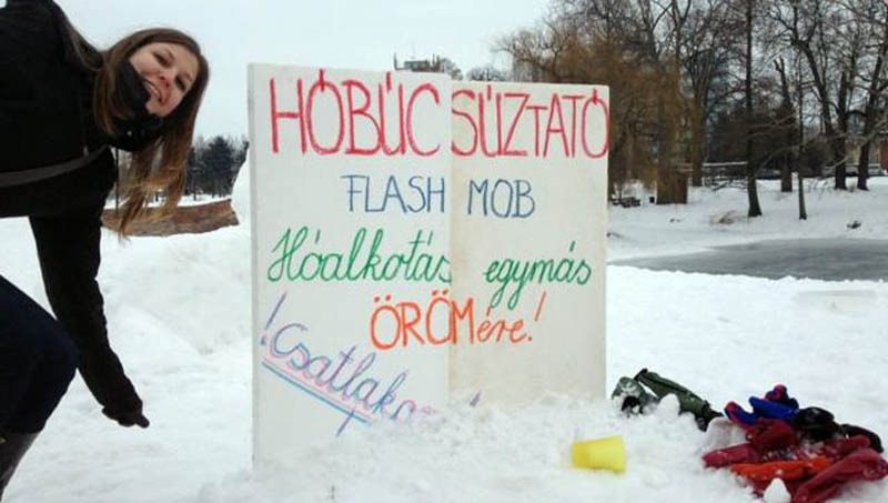 Egy civilekből álló baráti társaság vasárnap hóbúcsúztató (-alkotó) flashmob-ot (villámcsődületet) szervezett Gyulán, a Várkertben. Az összegyűltek megmutatták, hogy a hóban örömet is lehet lelni, és hogy mit is tudnak az összelapátolt fehér kupacokból alkotni. A kellemes délutánon számos hóember született. A csapathoz éppen arra sétáló családok és turisták is csatlakoztak. A jó hangulatú, hagyomány-teremtésre érdemes délutánt rögtönzött hócsatával és közös teázással zárták a résztvevők.