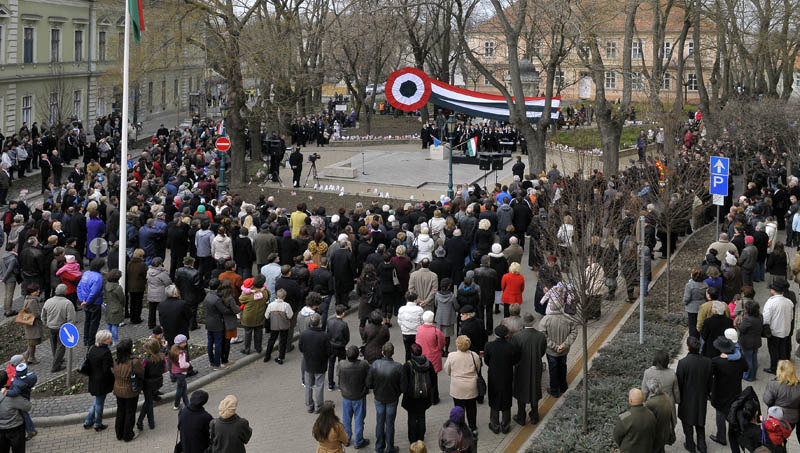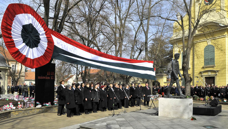 Az 1848–49-es forradalom és szabadságharc 164. évfordulója alkalmából rendezett városi megemlékezés koszorúzással vette kezdetét a Kossuth téren, ahol János Hajnalka és a Békés Banda verbunkokat és katonadalokat adott elő, majd 11 órakor ünnepi műsorral folytatódott a Petőfi-szobornál. A Himnusz elhangzása után Jókai Anna, Kossuth-díjas író és költő mondott ünnepi köszöntőt. A megemlékezés részeként ünnepi képviselő-testületi ülést tartottak a polgármesteri hivatal dísztermében, ahol kitüntetéseket adott át dr. Görgényi Ernő polgármester.