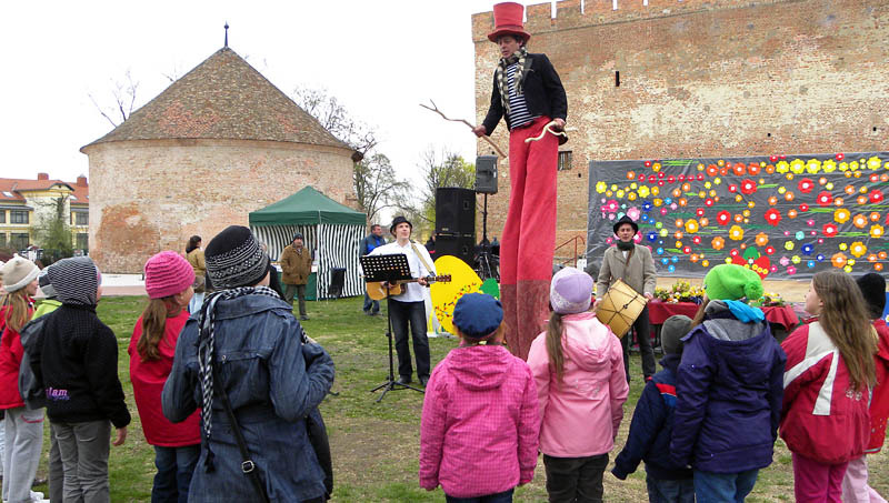 A Vaskalaposok Társulat gólyalábas vásári komédiával szórakoztatta a gyerekeket és a felnőtteket. A Napsugár Bábszínház színészei vidám, interaktív műsorukban a világ teremtését elevenítették fel. A húsvéti asztalidísz-készítő, valamint a húsvétitojás-díszítő pályázat eredményhirdetése után a Körös Táncegyüttes és vendégei adtak húsvéti műsort.
