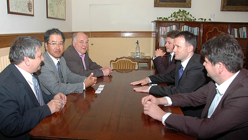 Ma délután látogatást tett Gyula városban Hisashi Takeuchi, a Magyar Suzuki Zrt. vezérigazgatója. A vezető először a Suzuki autókat forgalmazó Gyulai Autóházat kereste fel, majd kísérőjével, Szalai György önkormányzati képviselővel a polgármesteri hivatalba érkezett, ahol a városvezetők látták vendégül. Beszélgetésük során dr. Görgényi Ernő polgármester, Gajda Róbert országgyűlési képviselő, alpolgármester és Alt Norbert alpolgármester a kötetlen beszélgetés során dióhéjban bemutatták a várost Hisashi Takeuchinak, aki már négy éve dolgozik hazánkban, de eddig még nem járt Gyulán.