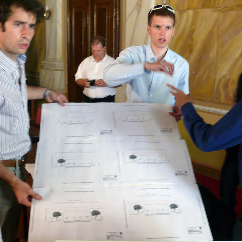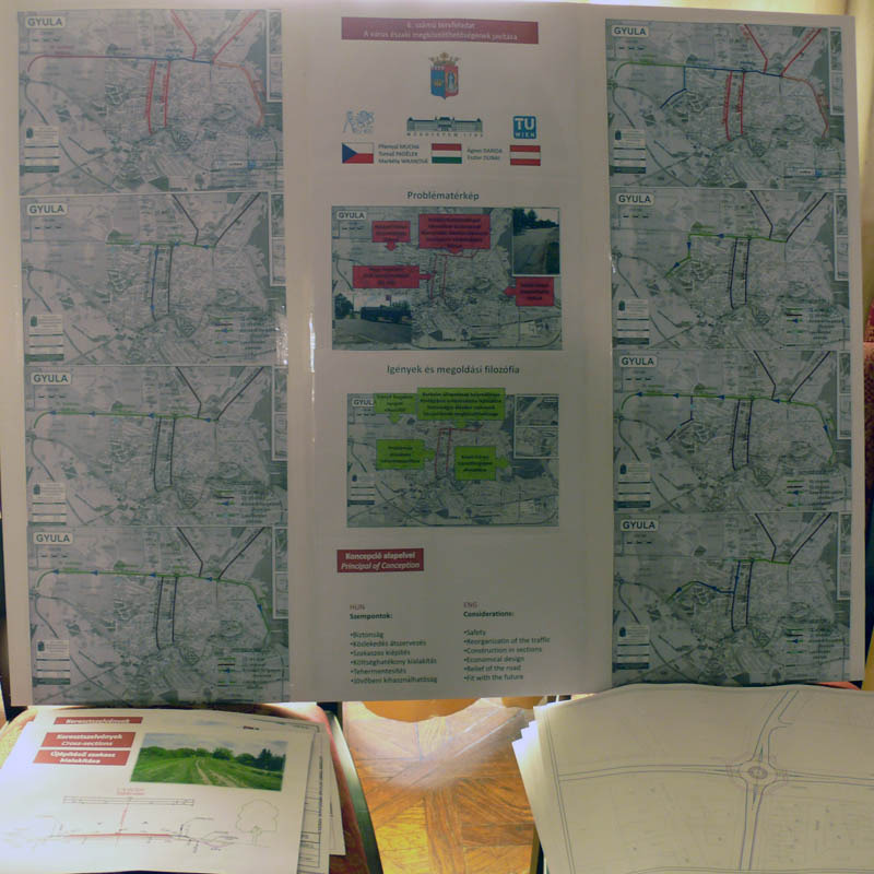 Hat egyetemista csoport mutatta be tablómunkáját a ma délutáni 23. MEPS nemzetközi tervezési gyakorlat eredményeként Gyulán. A magyar, cseh és osztrák diákoknak öt napjuk volt arra, hogy gyulai közlekedési problémákra megoldást találjanak. Az egyetemi tábor záró programján Béres István városi főépítész elmondta, a versenyzők a hétfői megnyitót követően feltérképezték Gyula közlekedési helyzetét, ezek után dolgozták ki elképzelésüket. Természetesen városunk is számos közlekedési koncepcióval rendelkezik, de ezt az egyetemisták nem ismerhették meg azért, hogy a problémákra megadott válaszuk az ő tudásukkal, szellemi frissességükkel és alkotó szabadságukkal legyen áthatva. Az előadásokról hangfelvétel készült, majd egy későbbi időpontban a tablókat az érdeklődők számára is elérhetővé teszik a tábor szervezői.