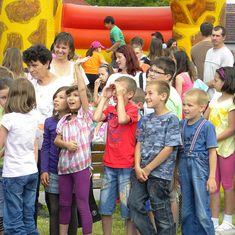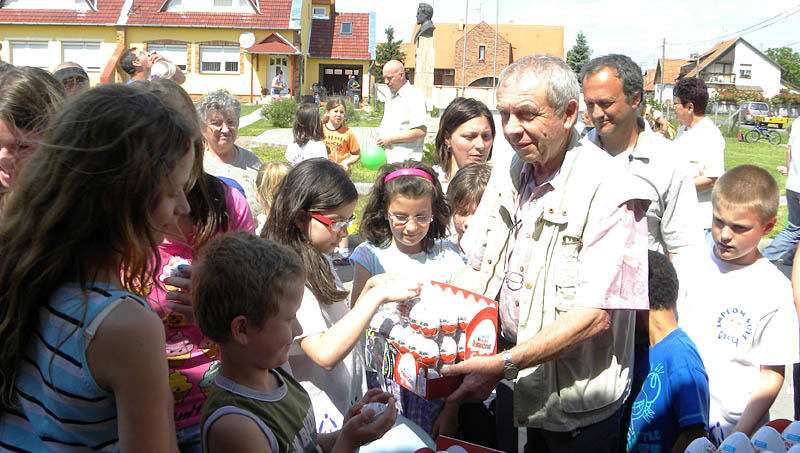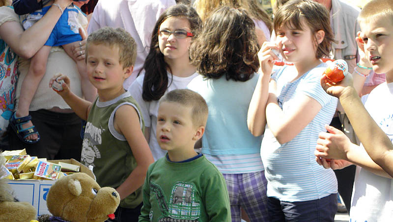 A támogatók jóvoltából a kicsik léggömböt, plüssjátékot és csokoládét kaptak ajándékba. A programon ügyességi vetélkedőt is szerveztek a gyerekeknek. A vállalkozó kedvűek megmutathatták, hogyan tudnak bekötött szemmel egy bot segítségével cserepet törni.