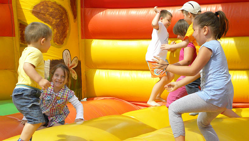 Nagyon sokan látogattak ki a Balogh Lajos önkormányzati képviselő által szervezett románvárosi gyermeknapra ma délután. A Pomutz téren már 14 órakor rengetegen álltak sorba az ingyenes fagylaltért és palacsintáért. A családi délutánon a gyerekek megmászhatták a hatalmas légvárakat, és a bátrabbak a rodeóbikára is felülhettek.