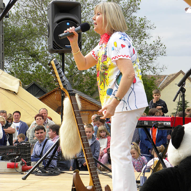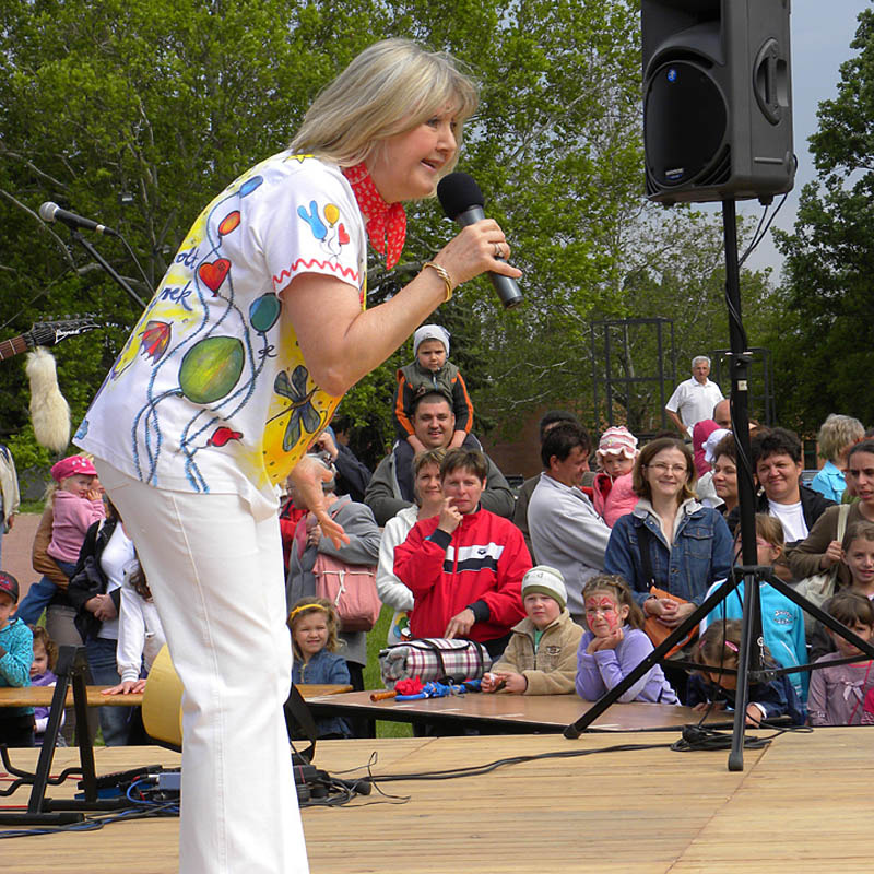 Színes programokkal várták a gyerekeket ma délután a városi gyermeknapra a várkertbe. A Gyulai Kulturális és Rendezvényszervező Nonprofit Kft. által szervezett rendezvény a Gyulai Kutyakiképző Iskola bemutatójával kezdődött, majd Halász Judit adott koncertet a vár előtt felállított színpadon. A gyerekek vidáman énekelték együtt az énekesnővel a régi és új dalokat.