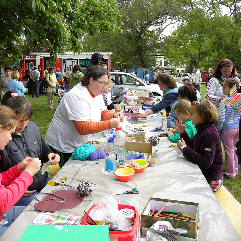 A délután folyamán a kicsik többféle játszó- és alkotóházban múlathatták az időt. Megtanulhatták, hogyan készül a kenyér: búzát őröltek, lisztet szitáltak, és tésztát dagasztottak. Játszhattak logikai játékokkal, megmászhatták a famászókát, vagy készíthettek maguknak álomfogót, csutkababát és papagájvirágot. A téren nyuszikat és különféle díszmadarakat is kiállítottak.