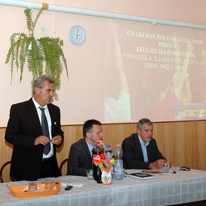 Szabó Károly képviselő körzetében folytatódott a Szolgáltató Önkormányzat Program keretében elindított választókerületi fórumsorozat. Szépszámú érdeklődő jelent meg a Bay Zoltán Általános Iskola ebédlőjében május 11-én délután. A fórumon jelen volt dr. Görgényi Ernő, polgármester, Daróczi László, a Gyulai Közüzemi Kft. ügyvezető igazgatója és Megyeri Sándor, a polgármesteri hivatal mérnöki osztályának vezetője.