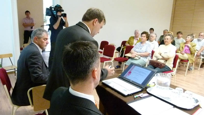 Megyeri Sándor osztályvezető a vasútállomás környezetének rendezési tervéről, a - még egyelőre csak elképzelésként létező - Dr. Gyarmati Sándor tér kialakításáról, az Ady Endre utcai parkolók létesítéséről és a Nürnbergi utcai körforgalom megépítéséről tájékoztatta a lakosságot.