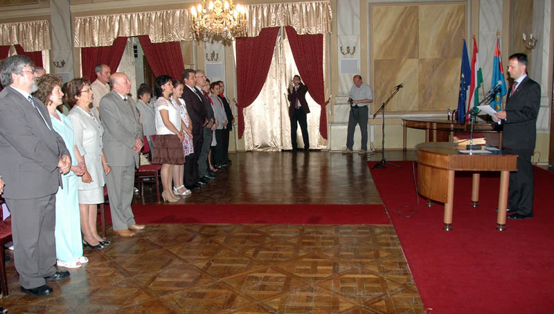- Sokáig a magyarságtól még annak a puszta jogát is elvitatták, hogy kifejezhessük nemzeti összetartozásunkat. Számos nemzet él a világon, amely tagjainak egy része az anyaország határain kívül ragadt. A szerencsésebb nemzetek szabadon dönthetnek arról, hogy megadják a határain túl élő társaiknak az állampolgárságot és határon túli testvéreik szabadon eldönthetik, hogy felveszik az anyaország állampolgárságát, s azután odaköltöznek vagy élnek tovább szülőföldjükön. Mi sokáig nem tartoztunk ezen szerencsés nemzetek közé, sőt Magyarországon generációk nőttek úgy fel, hogy amikor Zentán, Kassán, vagy Nagyszalontán magyar szót hallottak, nem tudták, hogy azok ugyanúgy az édesanyjuktól tanulták nyelvüket. Önök most egy egyszerűsített eljárásban kaphatták meg a magyar állampolgárságot, ami ünnep, hiszen ezt nekünk, magyaroknak külön ki kellett küzdeni, míg másoknak ez csak egy egyszerű jogi aktus. Ez az ünnep kifejezi összetartozásunkat – mondta beszédében dr. Görgényi Ernő.