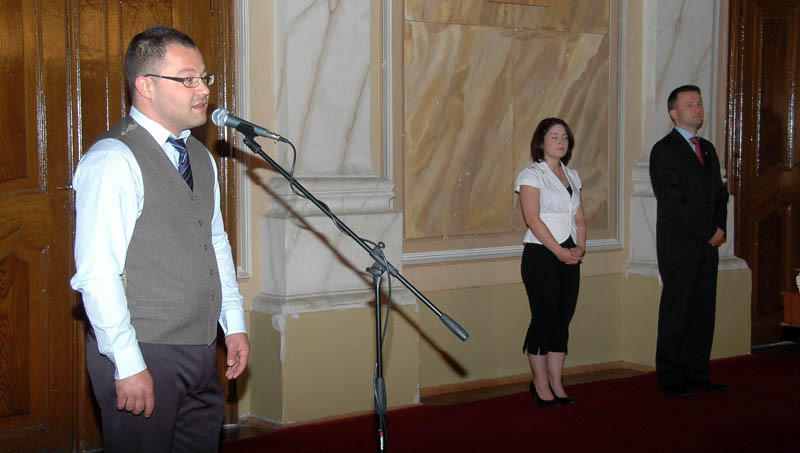 A ma délelőtti honosítás egy Bálint Gergő által tolmácsolt Wass Albert verssel kezdődött, majd hetvenheten tettek állampolgári esküt a polgármesteri hivatal dísztermében. Dr. Görgényi Ernő, Gyula város polgármestere köszöntötte hazánk új állampolgárait.