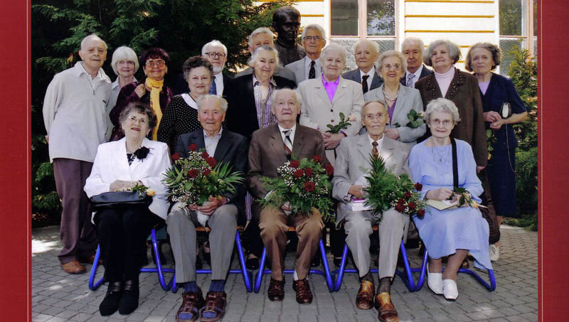 Első sor: Csikiné Papp Jolán diák, Kovács István, Domokos György, Lindeisz Ferenc tanárok, Lindeiszné Manninger Matild diák. Második sor: dr. Hartainé Remeczki Mária, Bakné Csomós Teréz, Szigethyné Kliszek Erzsébet, Müllekné Csontos Julianna, Durkóné Vidó Irén, Dr. Kranczler Éva diákok. Felső sor: Vincze Lajos, Martonné Gyuró Rozália, Gerzsenyi Sándor, Nagy József, dr. Szlágyi Mihály, dr. Körmendy Béla, dr. Kozma János, Merszné Pallag Ilona diákok.