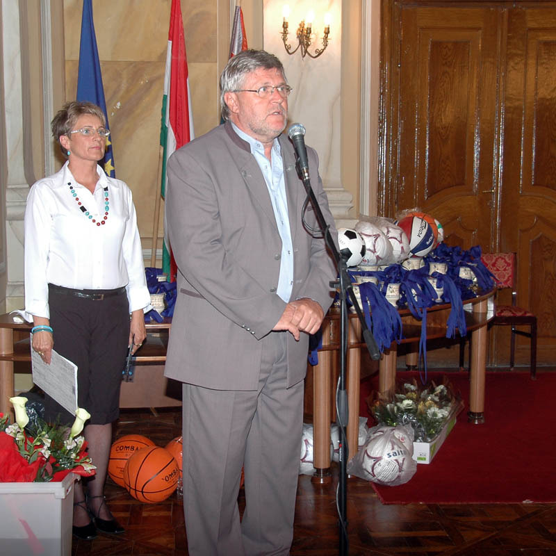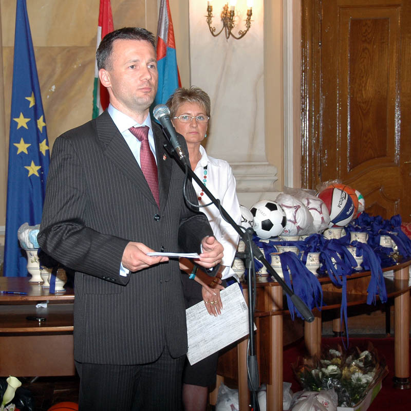 - Ti szerencsések vagytok, mert sportoltok, egészségesek vagytok, és volt valaki – szülő, tanár, edző, vagy kiváló sportoló – akinek a példáján felbuzdulva elkezdtetek edzeni. Majd csak később tudjátok meg, hogy ez az életetekre milyen hatással lesz. Sokkal boldogabb és jobb minőségű életetek lesz, hiszen a sport a győzelem érzésénél még fontosabbat is ad, az egészséget, izmos alakot, ezen kívül fejleszti a jellemeteket is. A sportok között is a csapatsport az, amely a legtöbb jótékony hatást kínálja az ember fejlődése szempontjából – szólt a gyerekekhez a polgármester.