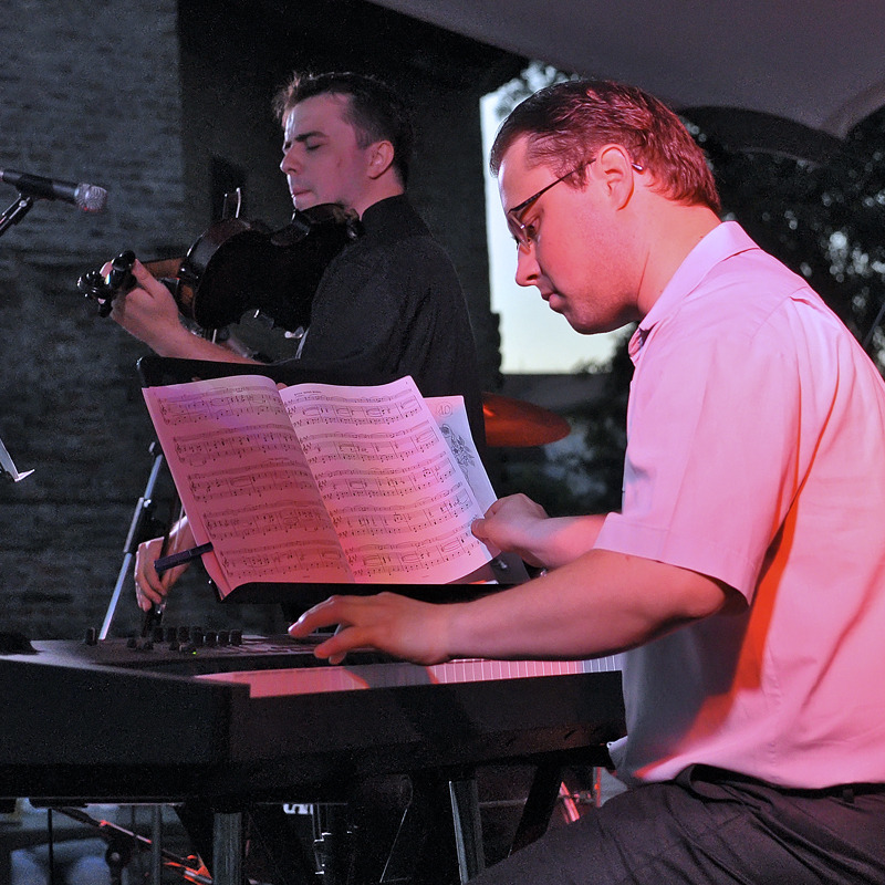 A Rondella Terasz tegnapi programja a Gyulai Aikido Klub bemutatójával indult, majd Kepenyes Pál és Döge Csaba zenés gyermekműsora következett. Ahogy leszállt az est, a Benedekfi testvérek léptek a színpadra. A látvány különleges koncertet sejtetett, ugyanis Benedekfi István zongoraművész és fivére, a hegedűs Benedekfi Zoltán mögött egy dobfelszerelés is helyet foglalt – egyelőre magányosan.
