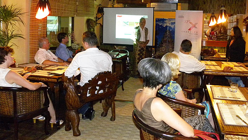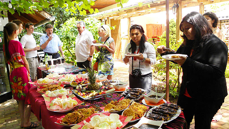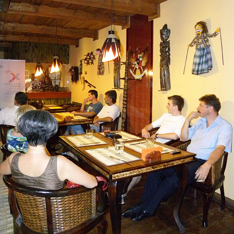 Az Indonéz Kereskedelemfejlesztési Központ magyarországi képviseletének munkatársa tartott tájékoztatót július 4-én a gyulai Garuda Indonéz étteremben. A magyar üzletemberek az indonéz kereskedelmi lehetőségekről és gazdaságról informálódhattak a képviselet igazgatóhelyettesétől, Franciska Simanjuntaktól.
