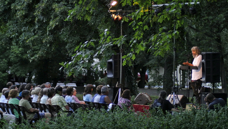 A Gyulai Kulturális és Rendezvényszervező Nonprofit Kft. által szervezett nyári programsorozat részeként Földes László Hobo lépett fel tegnap este Hármasoltár című önálló irodalmi estjével Gyulán. A másfél órás előadás helyszíne az Almásy-kastély parkja volt. A hatalmas fák és a város lüktető életének beszűrődő hang- és fényfoszlányai különleges hangulattal töltötték meg a teret, saját, 21. századi valóságunkkal itatták át a szövegvilágot.