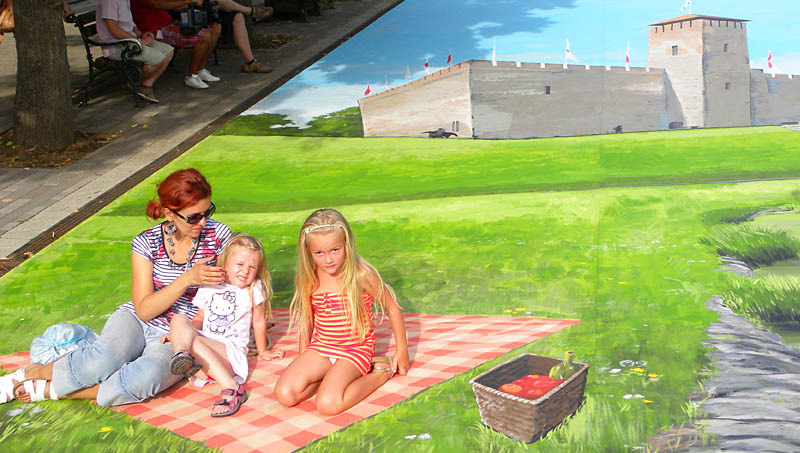 Hatalmas, a gyulai várat és környékét ábrázoló szőnyeggel borították be tegnap délután a gyulai Tourinform Iroda munkatársai a Világóra és a Harruckern tér közti utcarészt. A alkotásra festett plédre leheveredve bárki lefotóztathatta magát a „Csónakázótó mellett”.