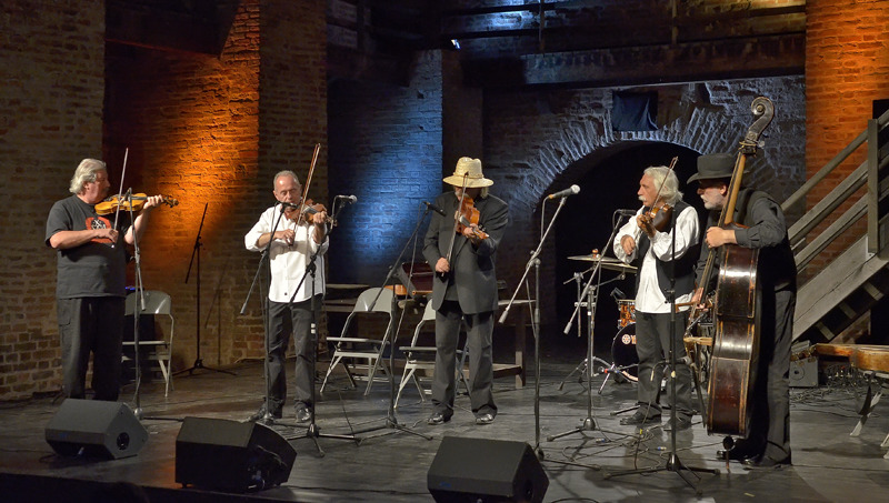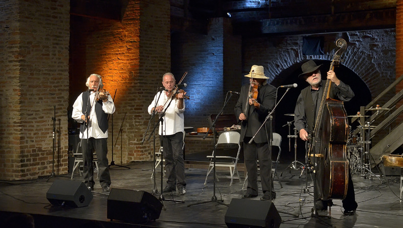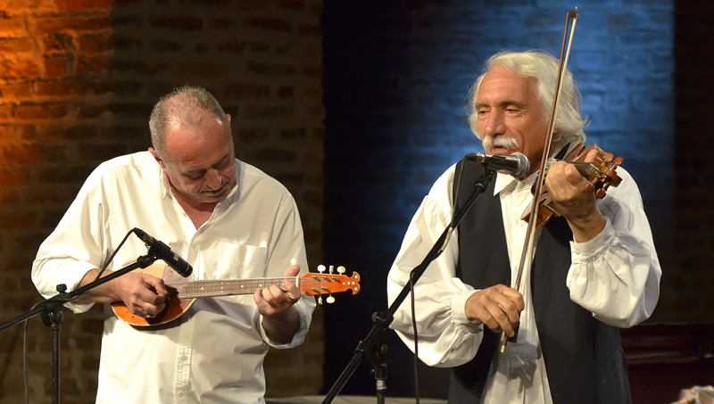 Ezt a blokkot már nem követte szünet, a sötét nézőtér némán nézte a gyors átszerelést. Éj fele felé járt már az idő, s hallgatólagosan nem ment ki senki, hogy minél hamarabb kezdhessen a Muzsikás együttes. A műfaj nagy öregei meghálálták a kitartást, a Kalotaszegi után a két prímás, Sipos Mihály és Porteleki László, ütőgardonos kísérettel Békás vidéki ritmussal pezsdítette a vért az erekben. Ezután Éri Péter és Hamar Dániel előadásában egy betyárballadát hallhattunk bouzuki és bőgő hangjának kíséretében. Közös erővel elénekeltük a Dunáról fúj a szél című dalocskát, aminek léte több kérdést is felvet. Hogyan húzza egy hegedülni tanuló kisgyerek, és hogyan egy bogyiszlói prímás?! Egyáltalán ki a műben szereplő Jancsika? Egy méltatlanul elfeledett strófából rögtön kiderült, hogy Jancsika nem ki, hanem mi. Halmos Béla megjelent a színe,n és tovább folytatta még néhány versszakkal a pajzán szerelmes dalocskát, majd gyimesi katonakísérő dalok hangzottak el. A koncert zárásaképpen pedig összeállt a gyulai muzsikus és a legendás Muzsikás egy szabad rögtönzésre. Éjfél után volt már, de a vastapsért muszáj volt még egyet ráhúzni.