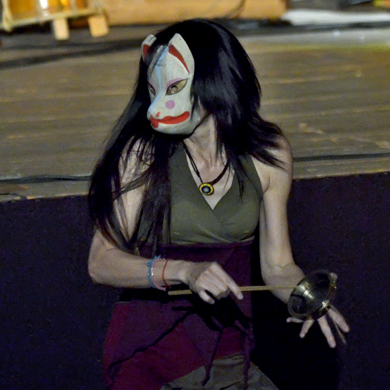 Mindenféle szempontból igazi világzene kerekedett, a GOCOO zenekar dinamikus és szépen felépített ritmuskombinációiból kihallatszott, hogy merítettek más népek és a modern zenék ritmusvilágból is. A beindító, ősi lüktetésen kívül a megkomponált látvány sem volt utolsó. Szokatlan volt, ahogy a füst a zenészek mögött áramlott, ezzel olyan hatást keltve, mintha egy máglya előtt játszanának. Ezt fokozta volna az irányított, színes megvilágítás, amely igencsak gyérnek bizonyult. Egy-egy szereplő többször „lemaradt” a fényről, a közönség soraiból pedig úgy tűnt: a kissé távolabb lévő Tószínpad ritkán volt tanúja fényárnak. Szerencsére azért volt mit látni, ahogy az előadók időnként japán álarcokban táncoltak, máskor meg animális maszkokban hátborzongató állatutánzásba kezdtek.