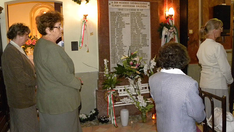 – 1948 óta templomunkban minden évben megtartjuk a málenkij robotra emlékező szentmisénket, ahol imádkozunk a távolban elhunytak lelki üdvéért, ugyanakkor hálát adunk a sikeres, de keserves hazajövetelért, a hazajöttekért. Magyarországról 1945-ben a Szovjetunió követelésére a hadifoglyok mellett még 30 000 németet, német nyelvűt vittek ki robotra. Gyuláról 84 leányt, 44 asszonyt, 102 nőtlen férfit, 219 nőst és 17 házaspárt. Testi vagy lelki erejük gyengülése, munkahelyi baleset vagy járvány következtében, az úton, illetve a lágerekben, bányákban 64-en vesztették életüket, akiket hozzátartozóik még ma is gyászolnak – idézte fel a múlt eseményeit a hagyományőrző kör elnöke.