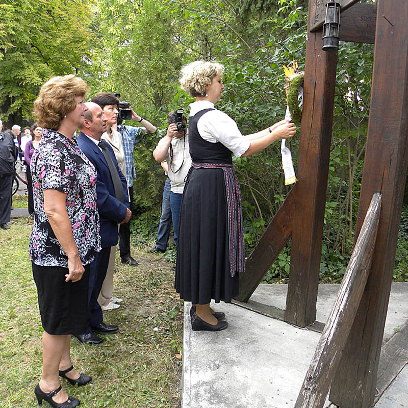 A beszédet követően Gyula Város Német Nemzetiségi Önkormányzatának tagsága helyezett el koszorút a haranglábon. A megemlékezés végén Ludvig András húzta meg a harangot, hogy az egybegyűltek csendben imádkozva gondolhassanak halott sorstársaikra. A koszorúzás után a K. Schriffert utcai Német Klubban látták vendégül a túlélőket.