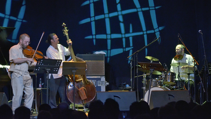 Rövid átszerelés után Mezei Szilárd hegedűművész triója folytatta. Fékevesztett tempójú futamba kezdtek, a bőgő és mélyhegedű unisonóban kvintelt. A hihetetlen módon szilaj és szenvedélyes alapokat nem térítette el az időnkénti szabad improvizációk sem. A szinte kiszámolhatatlan ritmusok, a végtelen, forgó ütemek és óramű pontosságú összjáték jó értelemben vett feszültséget keltett az emberben. A brácsa, bőgő, dob gyakran hangról-hangra együtt játszott és a bartóki feszültségeket lágyította némi keleties népzenei dallamvilág. A progresszív zenék repertoárjába is beleillő, fantasztikusan erős kezdés után vártam, hogy a felfokozott tételek időnként újra kisimuljanak. A free óriási koncentrációt igényel, éppen ezért az alkotási és technikai szempontból magas szintű előadásnak talán nem, viszont hallgatóinak a lélek szempontjából szüksége lett volna a felhalmozódott nagyfeszültség kisütésére.
