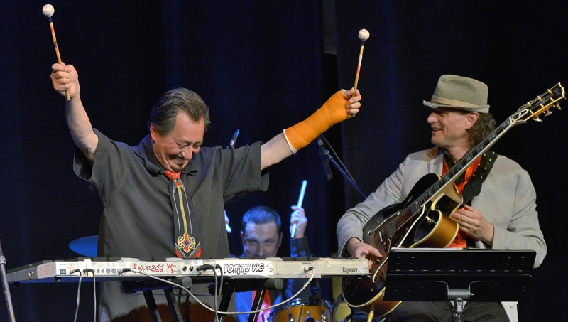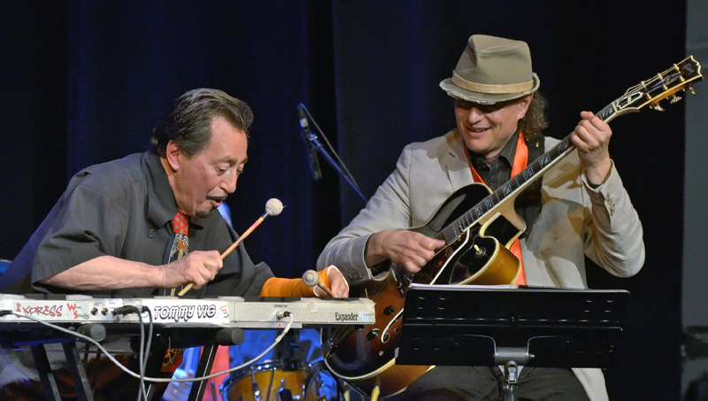 Az ezután következő produkció éppen ellenkezőleg, a jelenlévőket a jazz műfajon belül egy könnyed szórakozás felé terelte. A magyar származású vibrafonos, Tommy Vig nemrégen töltötte be 74. életévét, de még mindig fiatalos technikával pergeti az ütőket. Sajnos egy bő hete eltörte az egyik csuklóját, így jobb kezével kellett segítenie gipszbe kényszerült bal kezét. Aki esetleg megrökönyödne ezen, annak elárulom: a balesete után közvetlenül sem mondta vissza fellépését, törött kézzel játszotta végig koncertjét. Tommy Vig főleg swing bőgő-dob alapokra épülő vibrafonjátékát az est folyamán már bemutatkozó Gyárfás István virtuóz gitárjátéka is kísérte. Koncertjükön közreműködött felesége, Mia Kim dél-koreai származású énekesnő is, akinek segítségével, saját stílusukban, magyarul előadták Petőfi Sándor Füstbe ment terv című költeményét. A nagyvilági hölgy a show kedvéért, egy négykezes erejéig beszállt a vibrafonozásba is. Mosolygós, jó kedélyű férje ötven évet töltött az Egyesült Államokban és ez alatt számos világhírű zenésszel koptatta együtt a világot jelentőt. A számokat összekötő szövegeiben erről hallhattunk vidám történeteket, illetve vicceket, ami tovább lazította az ekkorra már éjszakába nyúló fesztivált.
