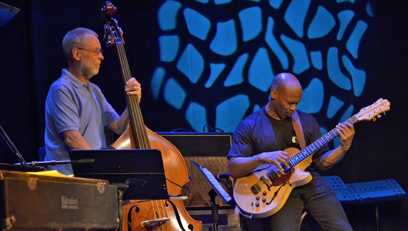 A koncertsorozatot megelőző, hatórás beállás jól sikerült, a fellépő zenekarok közötti gördülékeny átszerelések tényleg csak néhány percet vettek igénybe. Az est folyamán még csak nagybőgősök képviselték a partitúrák kizárólag basszuskulccsal kezdődő sorait, mintegy beharangozva a fesztivál fő vendégét, Miles Davis egykori bőgősét, Dave Hollandet. Nem véletlen, hogy a legendás zenész nála ifjabb virtuózokkal vette magát körbe, még mindig energiától duzzadó elánnal játszik hangszerén. A nyitány után a gitáros, Kevin Eubanks szerzeményét hallhattuk, amelyből kiderült, egészen kivételes gitárosról van szó. Egyedülálló technikáját még tovább színesítette egy hangerőpedállal, egyik lába alatt folyamatosan állította saját hangerejét, mintegy megfelelő mennyiséget adagolva a többiekhez, nem beszélve a különleges, úsztatott hangokról, ami az egész koncertet jellemezte. Nem tudni miért, a technikusok még a látványos gitárszólók alatt sem merték feljebbtolni hangerejét, így igencsak fülelnie kellett annak, aki nem akart erről a katartikus élményről lemaradni. Hangerőből jócskán jutott azonban jutott Eric Harland dobosnak, aki hangosítás nélkül is elementáris energiákat szabadított fel membrafon hangszeréből. Egyedi stílusának egyik titka az ütemeket triolákra és más kombinációkra tördelő, csúsztatott, ettől fogva „végtagbeindító” játéka. A zenekar billentyűse, Craig Taborn-t nem hiába tartják sokan a világ legjobb billentyűsének, a szemmel követhetetlen futamokon kívül végtelen érzékenységgel és alázattal nyúlt a zongorához és az elektronikus orgonához. Emezek rendkívüli zenéje és Dave Holland mindenre nyitott játékstílusa képes volt a jazzt elvinni a pszichedelika, a rock, vagy a blues irányába is. A 15-20 perces, forgó, páratlan ritmusokkal tűzdelt, változatos számok sorát nem biztos, hogy éjfél után célszerű volt egy lassú nótával megszakítani, bár a Dave Holland Prism Quartet képes volt arra is, hogy következő tételével újra felrázza a már kissé elpilledt közönséget.