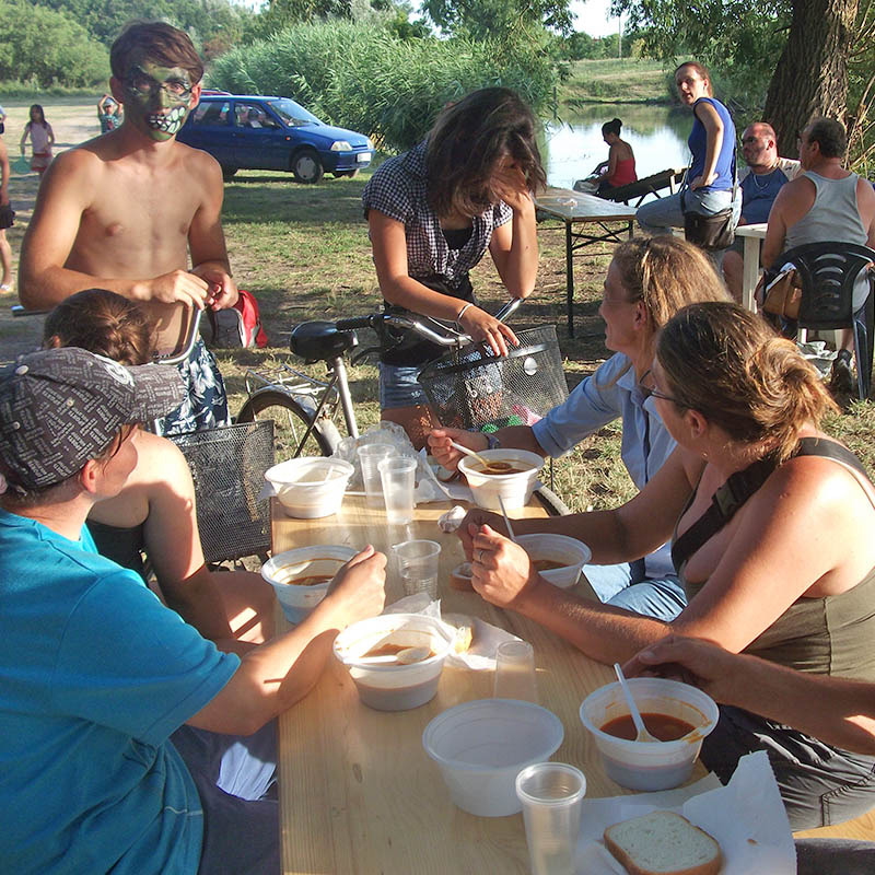 - A Gyulakonyha jóvoltából zsíroskenyeret ehettek a résztvevők, Balogh Lajos képviselő úr pedig bablevest készített bográcsban. Sajti Balázs felajánlásból szódavizet is tudtunk az ételek mellé biztosítani – tájékozatta a Gyulai Hírlapot Apponyi Andrea CSSK tagintézmény-vezető.