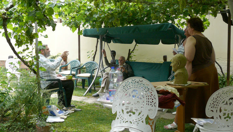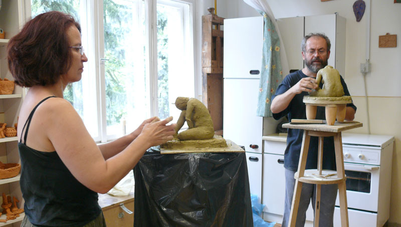 Három helyszínen is zajlik a munka: a GYAKI művészetoktatási intézményében aktfestés és szobrászat folyik, valamint két művész Schriffert Mihály, gyulai fafaragó otthonában készíti el az idős művész portréját.